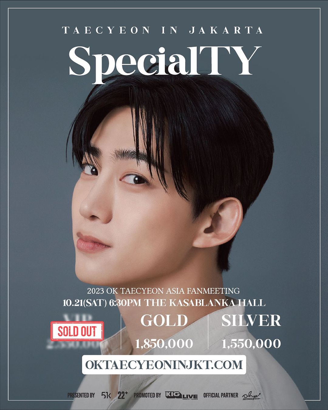 Tiket masih tersedia di website kiglive.id untuk menyaksikan 2023 Ok Taecyeon in Jakarta: SpecialTY, dimulai dari harga Rp 1,550,000 untuk kategori SILVER dan Rp 1,850,000 untuk kategori GOLD. Tidak hanya penampilan dari OK TAECYEON, namun pembeli tiket juga akan berkesempatan untuk memenangkan fan benefit seperti Polaroid Photo, Signed Poster, dan Soundcheck Session.